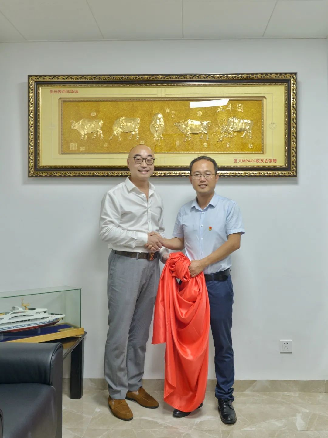 5月30日下午,管理学院MPAcc校友会为庆祝百年校庆,向学院赠送了特别定制的1.98米壁挂式《五牛图》漆线雕,以表达校友们对母校母院的美好祝福。
