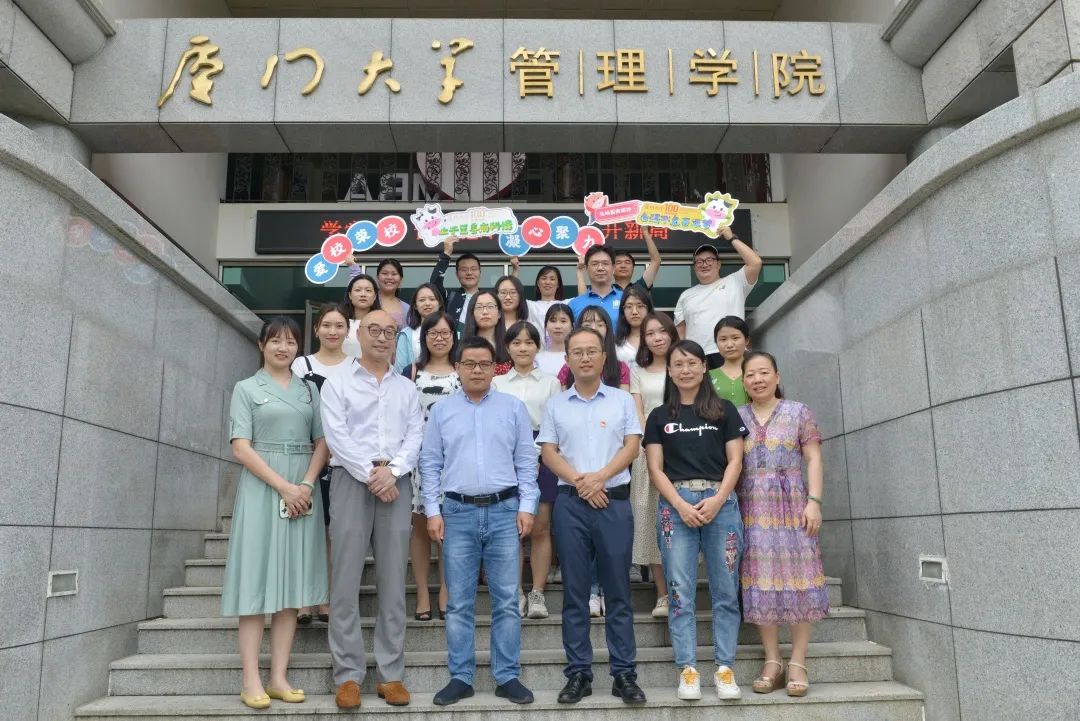 管理学院党委副书记戴蓥老师,会计系副系主任张国清老师与参加活动的校友们合影留念。