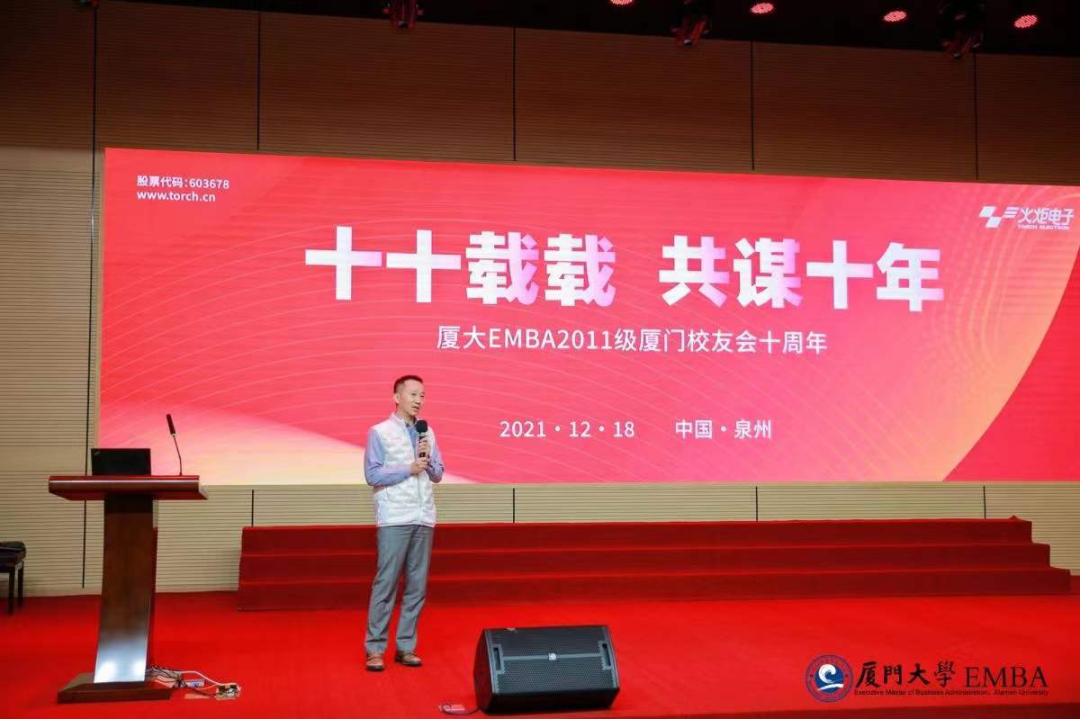 2021年12月18日的十周年校友会,60余位同学相聚泉州蔡劲军会长的火炬电子集团。