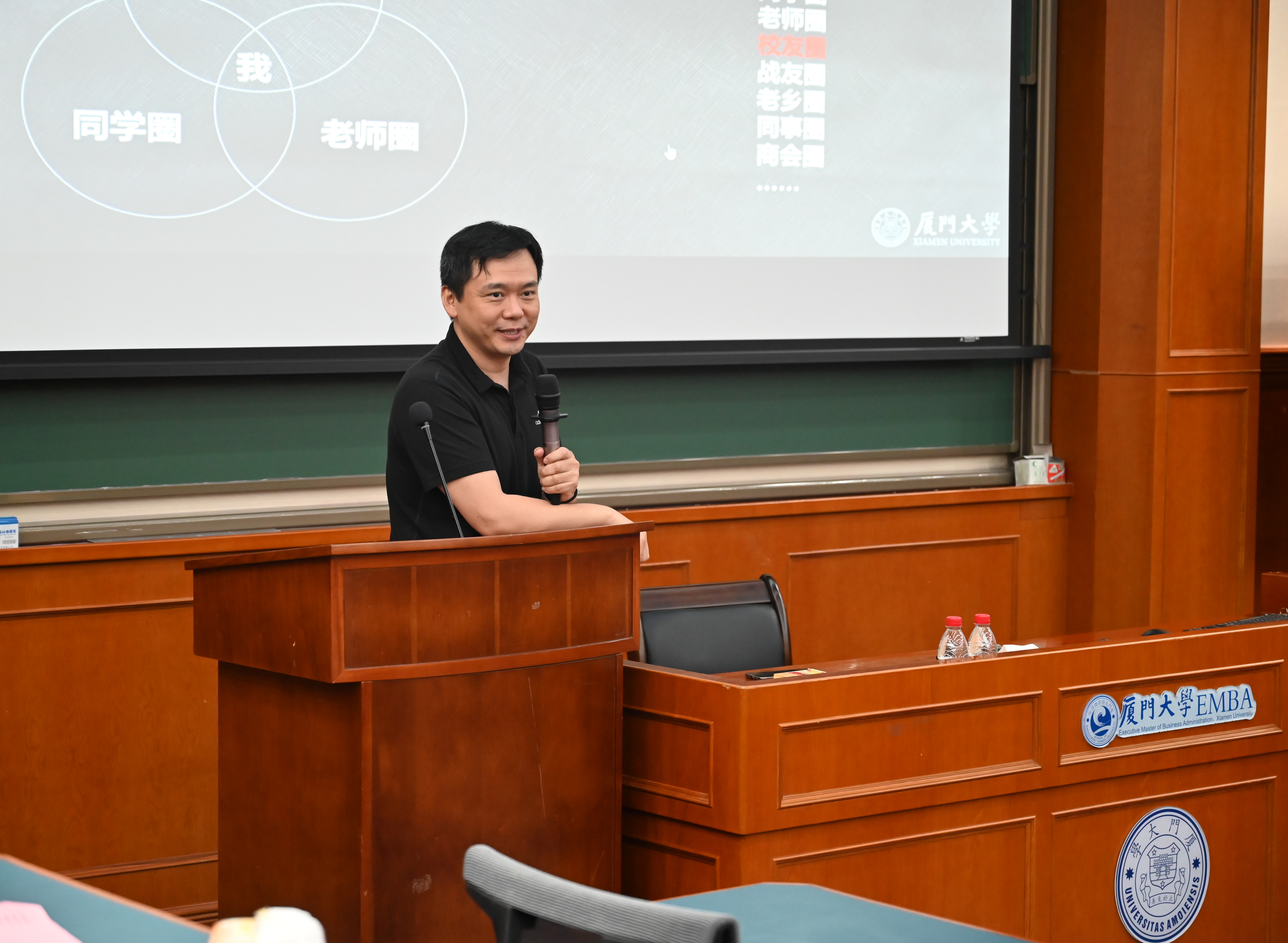 聘任仪式后,2014级会计校友、普华永道中天会计师事务所(特殊普通合伙)厦门分所预备审计经理陈炯任和2003级会计/2016级MBA校友、纳兰咨询总经理那洪涛两位学长也先后做了分享和交流。